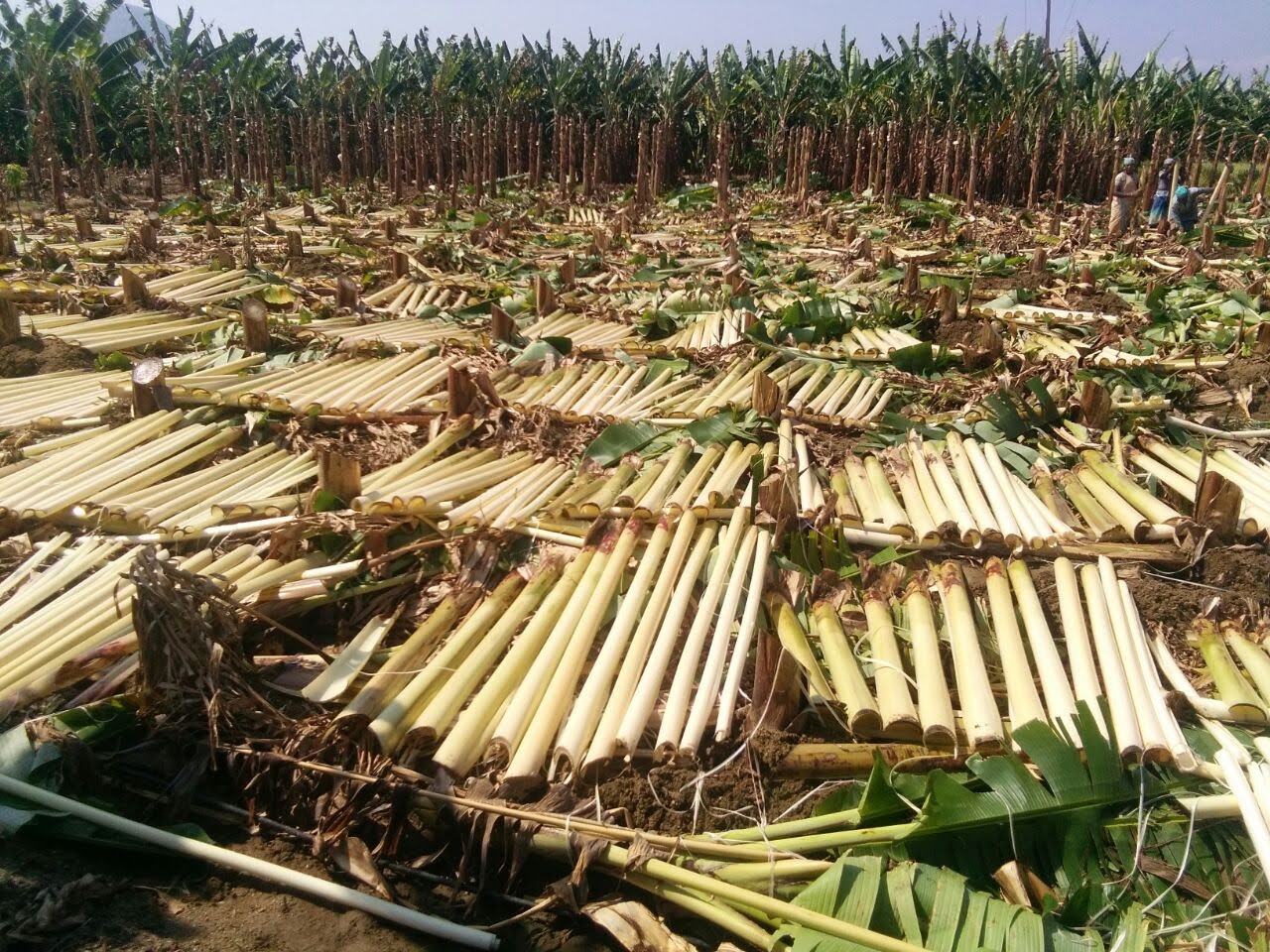 The banana fiber originates from the Philippines, sourced from the Abaca banana plant, considered a weed in the region. To maintain biodiversity, these plants must be cut down, making it beneficial to repurpose this waste material into our fabric.
